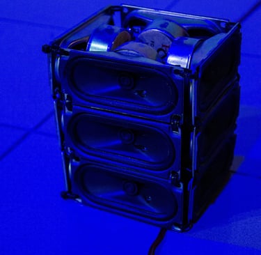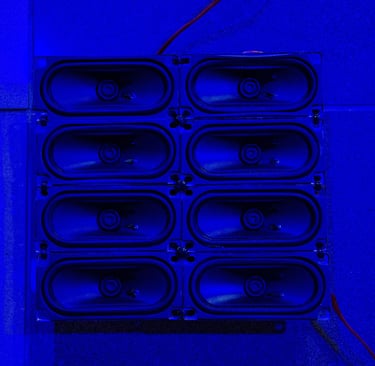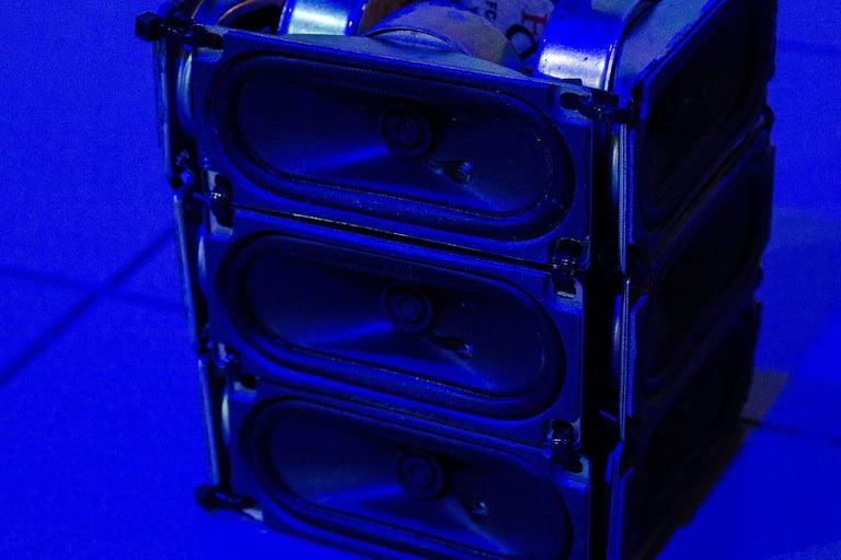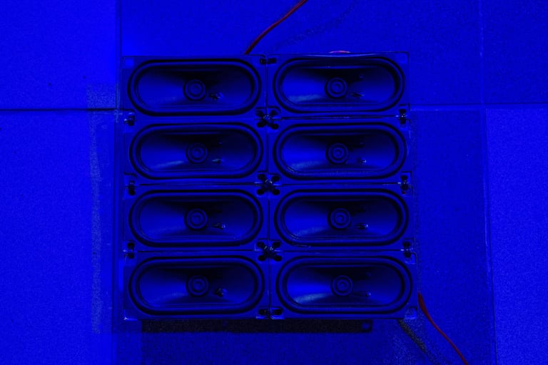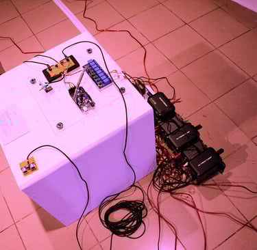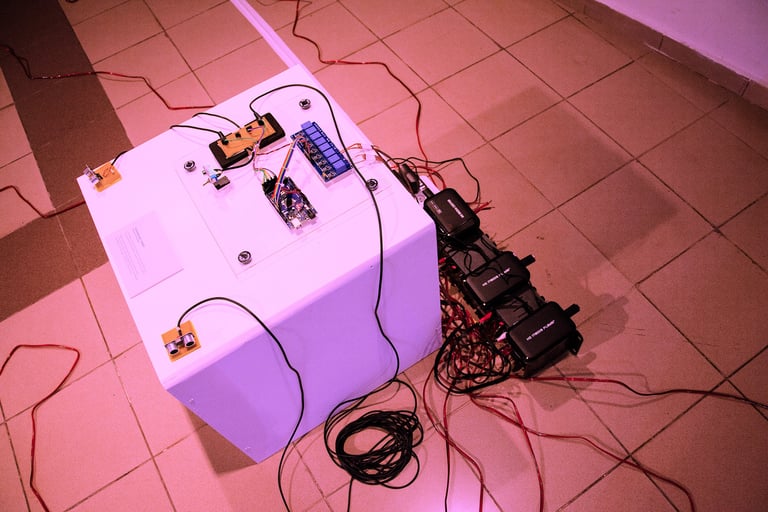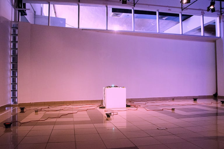Instalação sonora (alto falantes, sensores diversos, microprocessador arduíno e amplificadores de áudio)